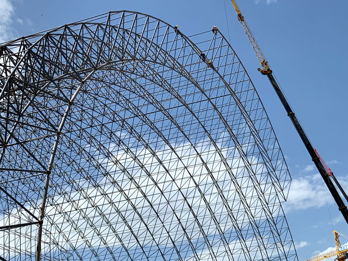 (2)网架加工前应对现场尺寸进行复测,确认无误后方可进行加工、安装;网架制作、运输、安装应遵守《空间网格结构技术规程》JGJ7-2010、《钢网架萧县螺栓球节点》JG/T 10-2009、《钢网架萧县螺栓球节点用高强度螺栓》 GB/T 16939-2016、《萧县钢结构萧县工程萧县施工规范》 GB50755-2012、《萧县钢结构萧县工程萧县施工质量验收标准》 GB50205-2020。